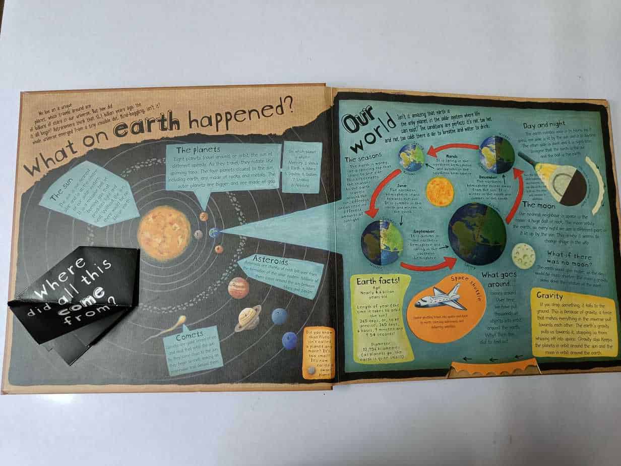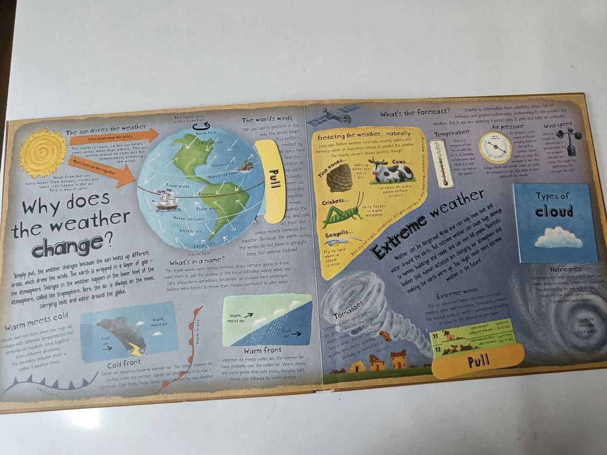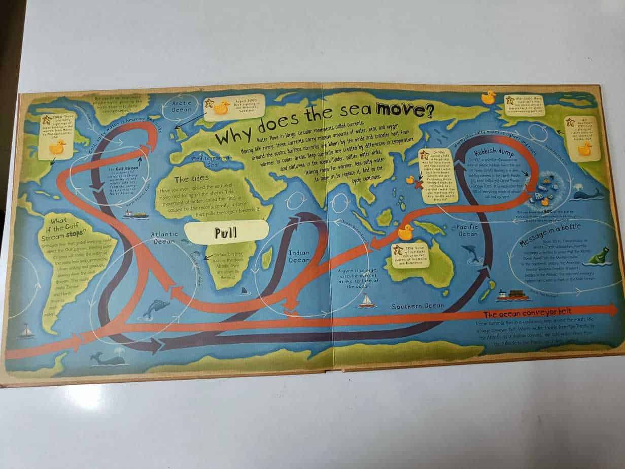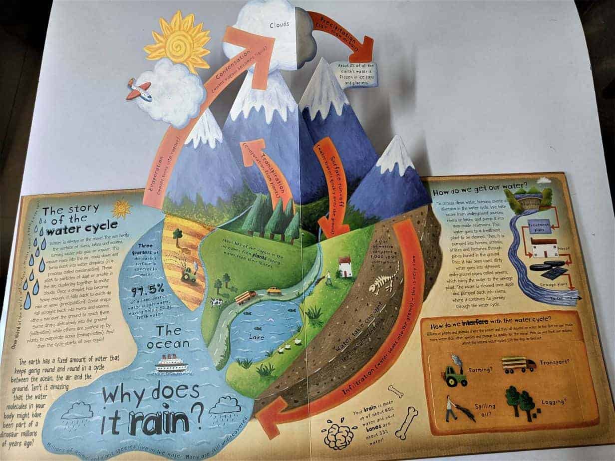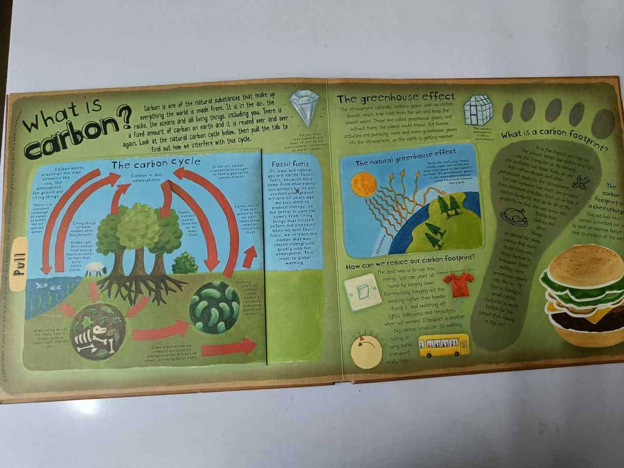 A very detailed book filled with many interactive tabs. Not many topics were understood by Nathan, but he likes to play with the tabs and we love pulling and reading each page. This book is ideal for kids above 5 years. This fun, engaging book introduces the earth’s important cycles and offers an exciting way to learn geography and science.
