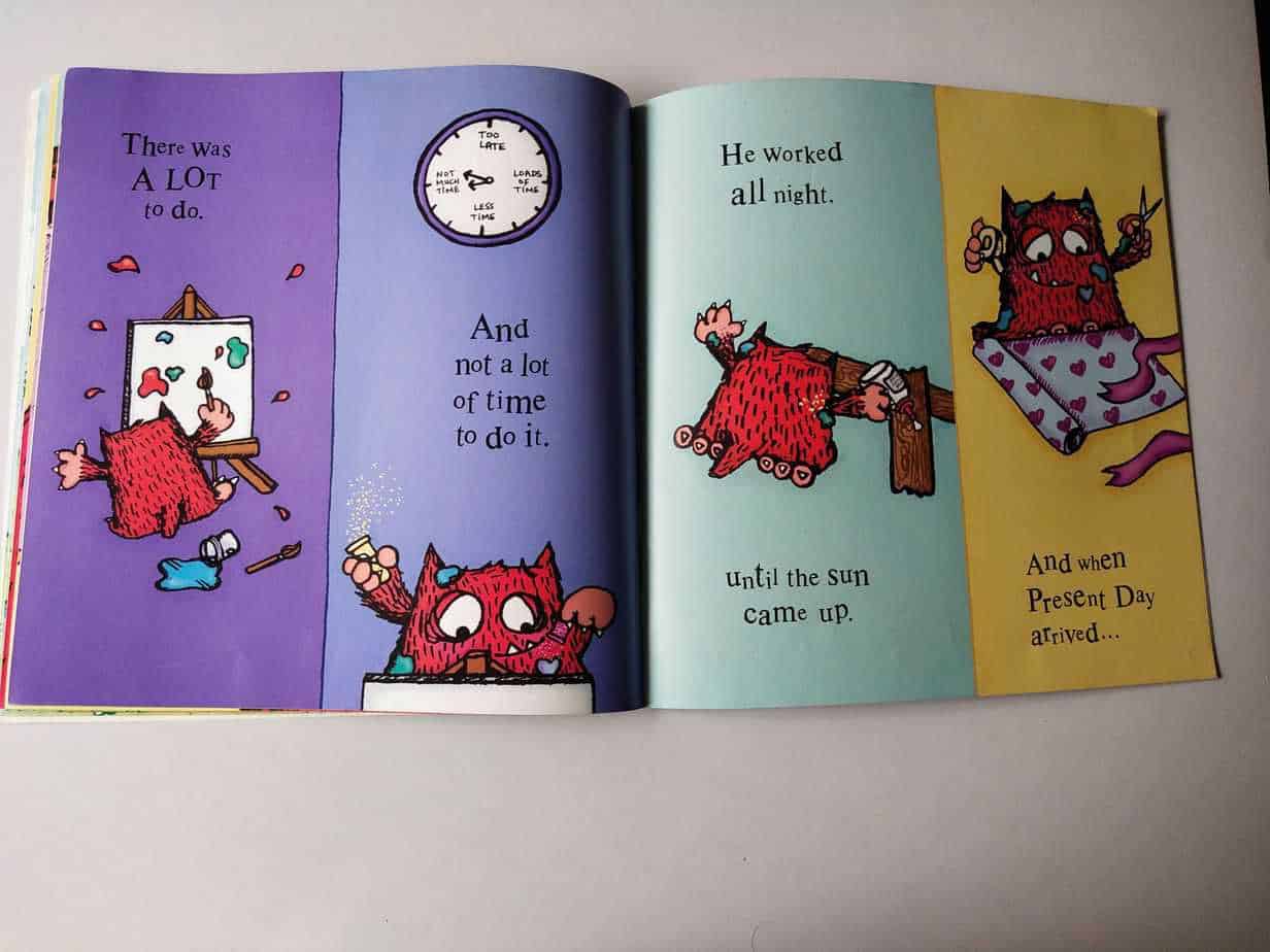 It is almost Present Day in Cutesville and it is the best day for them, and it only happens once a year. Love Monster wants to get the perfect present for his very special friend. He goes on a hunt for the best present for her. He soon realizes that finding the perfect present is not easy at all. He found many nice and shiny gifts, but they were very expensive and Love Monster had not saved up enough money for those kinds of presents. He comes to the conclusion that he can make a very special gift for his friend who he cared so much about. Love Monster realizes that the perfect present doesn’t have to cost very much to mean a lot to someone.