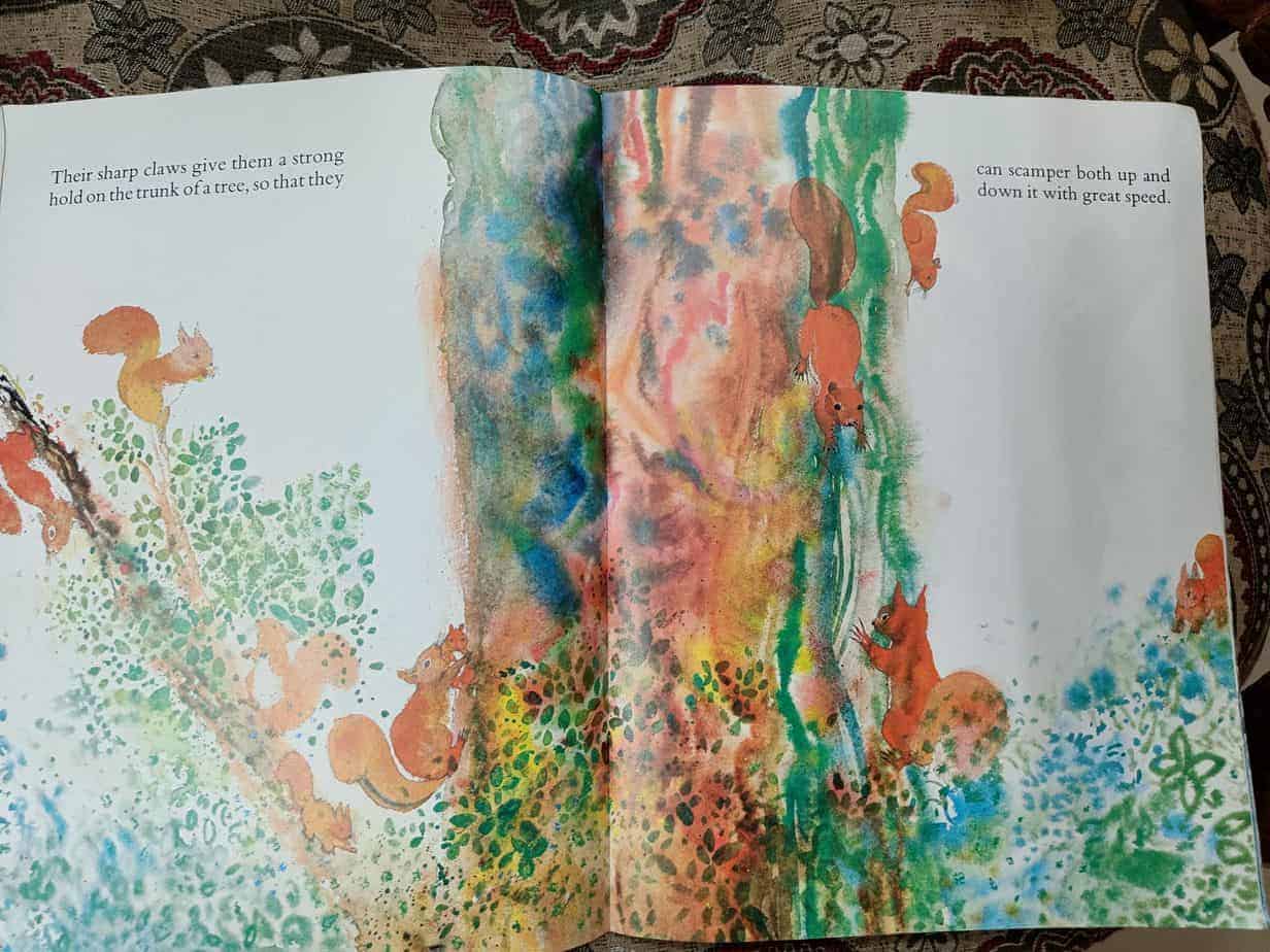 Fall/ autumn and squirrel are interrelated. Squirrels are active during the fall to store food for the winter. You can see they are buzzing very fast up and down. This non-fiction book about squirrels tells us about their nature, family, use of the tail and lifestyle. The watercolour illustrations in this book are so good. Each page has simple information that a young child can get to know about it. The facts were so interesting and fun, a must-read for a young wildlife enthusiast!