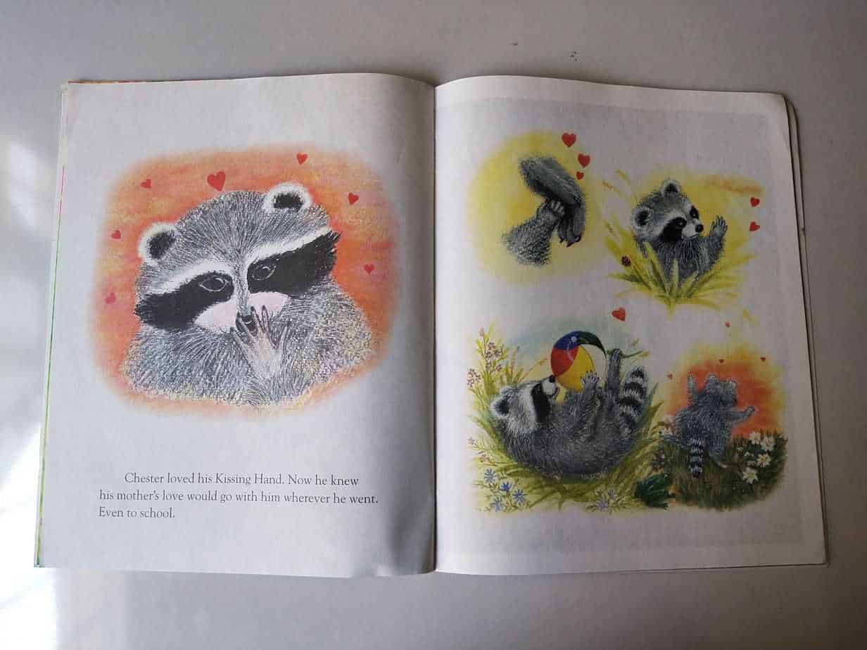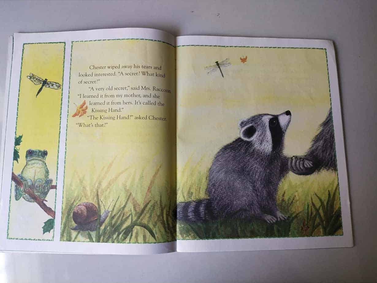 In this story, Chester Raccoon was so scared to go to school and his mother tried to remind him of all the fun he will have in school. But Chester was persistent not to go to the school. His mother said I have a secret from your grandmother and she always did this when I was scared. His mother opened his palm and kissed him. She said, if you ever get scared, open your palm and think of me. With that love, Chester Raccoon happily off to the school. This is such a heartwarming story, and you can have this custom with your kids if they are scared to do things alone.