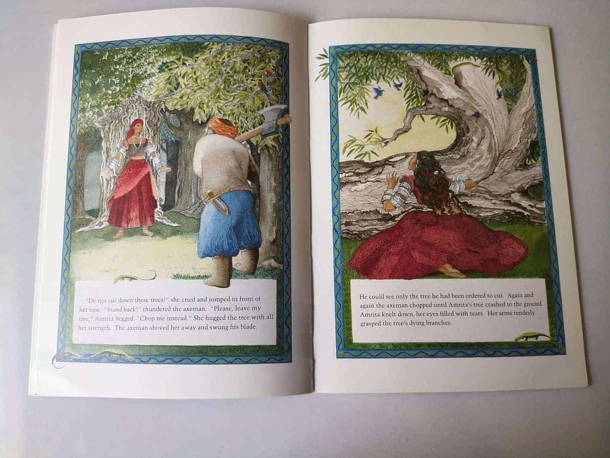 I was awed by reading this story, and it was so inspirational to see how women stood in front of the Maharaja with so many guts. It teaches the value of protecting the environment and standing up for one’s beliefs.