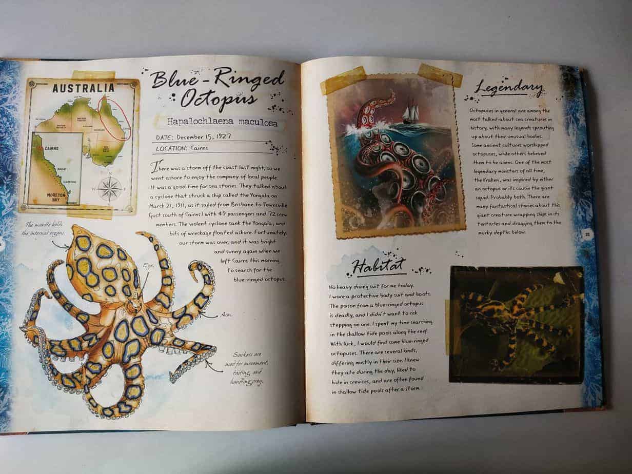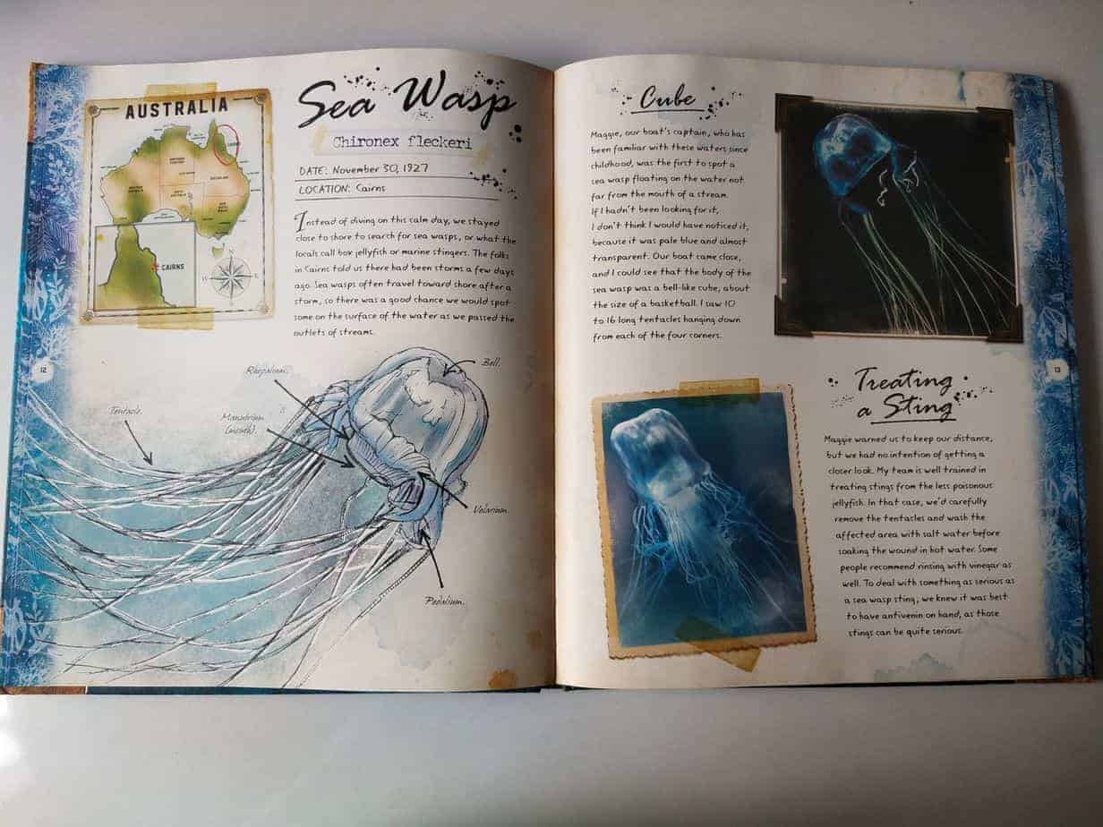 Nathan loves reading about sea creatures. It all started with one glow-in-the-night book and he is still fond of any sea creatures. Knowing that I was gifted this book last Christmas. This book talks about the experience of marine biologist Warren Willmott. In 1920, he went for a 6-week intense research on Australian treacherous water. He talks about different yet interesting sea creatures like leafy sea dragon, Grey reef shark, sea wasp, Blue- Ringed Octopus, Hawksbill Turtle, Dugong, and many more. Each sea creature is explained, in short, along with a bold illustration.