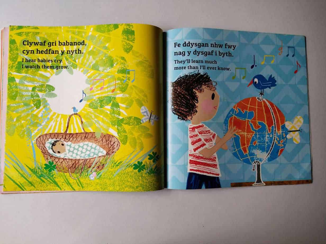 Hopgood’s illustrations are always vibrant, and he has done beautiful work in this book. Each lyric is drawn on a page, and young kids can understand it well. I really look forward to reading this book to Nathan at a right time and he can learn to appreciate things around him.