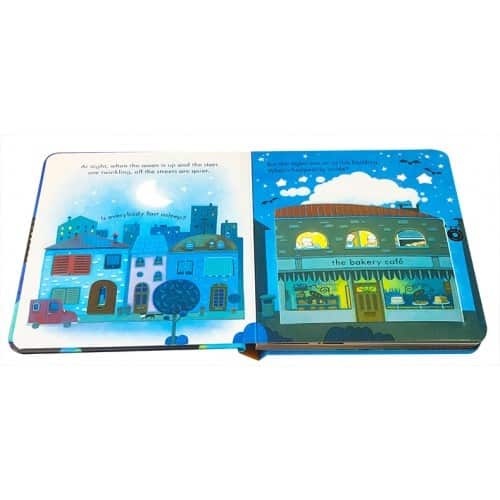 Nathan loves interactive books like lift-the-flap books, and touch-and-feel books. He loved turning these flaps from nine months. He’s three now and still enjoys them. One of our favourite series is Usborne Peep Inside Series by Simona Dimitri and Anna Milbourne. This book is special to us because this was our first lift-the-flap book and this book has many flaps to turn. Also, a peep through a hole in each page is spellbound.