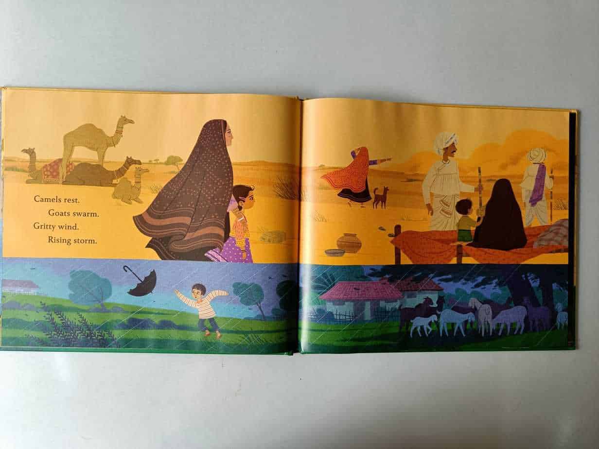 Desert girl, the monsoon boy, talks about Rabari people, an Indigenous tribe of nomadic herders and shepherds that live in northwest India. The book represents two families of different Rabari groups. The girl is from Gujarat and the boy is from Rajasthan. Both families have different lifestyles, cultures and follow different practices.