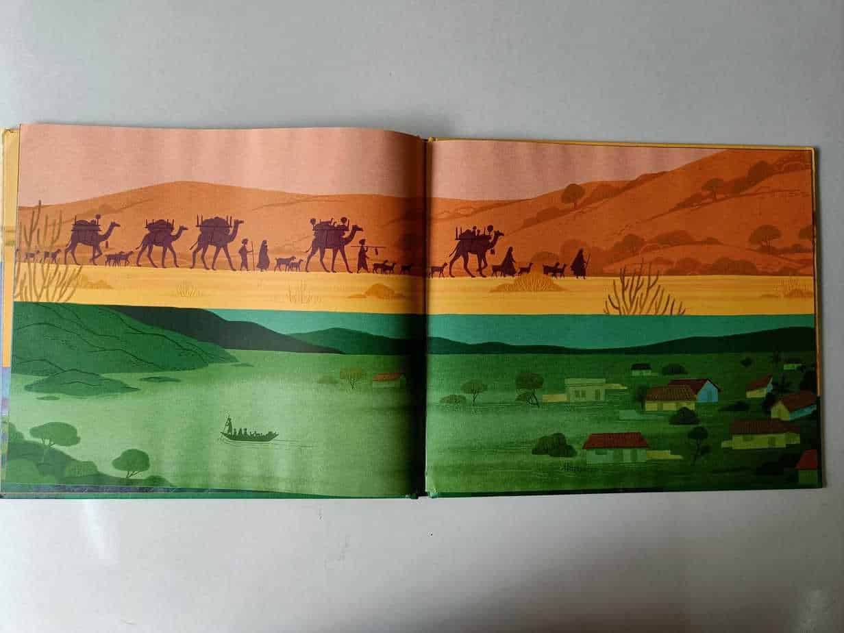 A beautiful story of togetherness and how different cultures are together in spite of the differences. This book can be a part of many discussions and kids can learn about weather, culture, nomadic life, migration, tribes, indigenous people, etc.