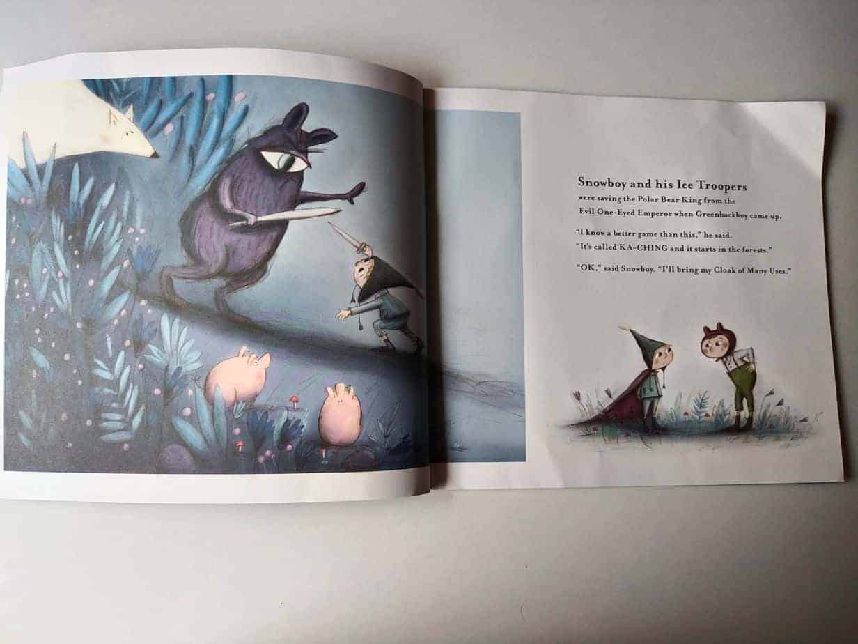 Snowboy is busy saving the Polar Bear King when Greenbackboy approaches him with an idea for a game called KA-CHING — a game that will make them rich. It’s easy: all they need to do is cut down all of the trees in the forest and catch all of the fish in the ocean and trade it in for piles and piles of shiny KA-CHING. But if all the trees are gone, they won’t be able to breathe and what is a sea without fish? Snowboy thinks for a moment and leaves the last of every tree and fish. Snowboy goes by his instinct and tries to nurture the last of everything and save the whole world. Will he succeed in his mission? The last tree can become their saviour?