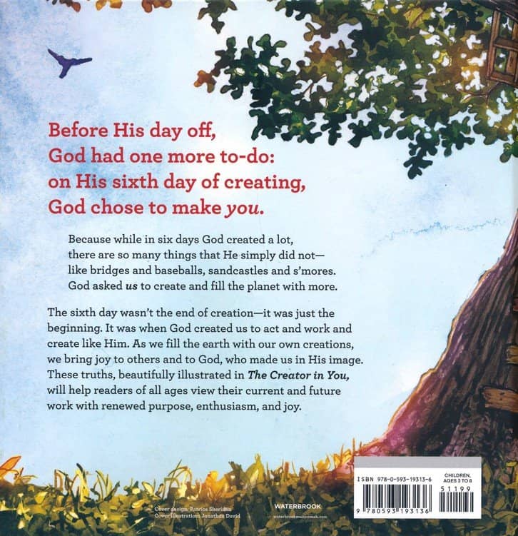 As an adult, I am very captivated by the illustrations and the texts on each page of the book. Genesis 1 is the backbone of anything in the world and this book provides the children with an interesting perspective on creation. The main emphasis of this book is to keep creating, whatever that may look like in my life so that I can do exactly what God left me on the planet for. The sixth day was just the beginning for humans to create endless opportunities in the world.