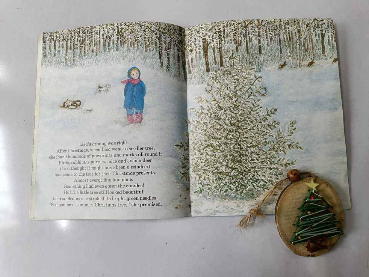 Such a thoughtful story for young kids and how they can save the trees and also have the spirit of Christmas around them. Apart from Christmas, this book also talks about how you can keep food for birds and animals near your home during winter. Lisa and her granny kept some food around the tree and the next day Lisa could see different paw prints around her tree. Such a lovely Christmas read to read during Christmas eve. Nathan and I purely enjoyed reading this story today.