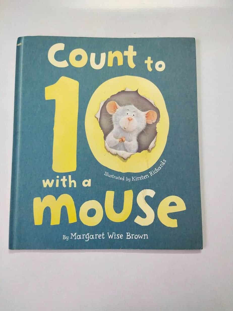 A fun little book about a mouse who wants to learn to count. He finds a book with a hole in it and he makes his way through its pages-and back again!