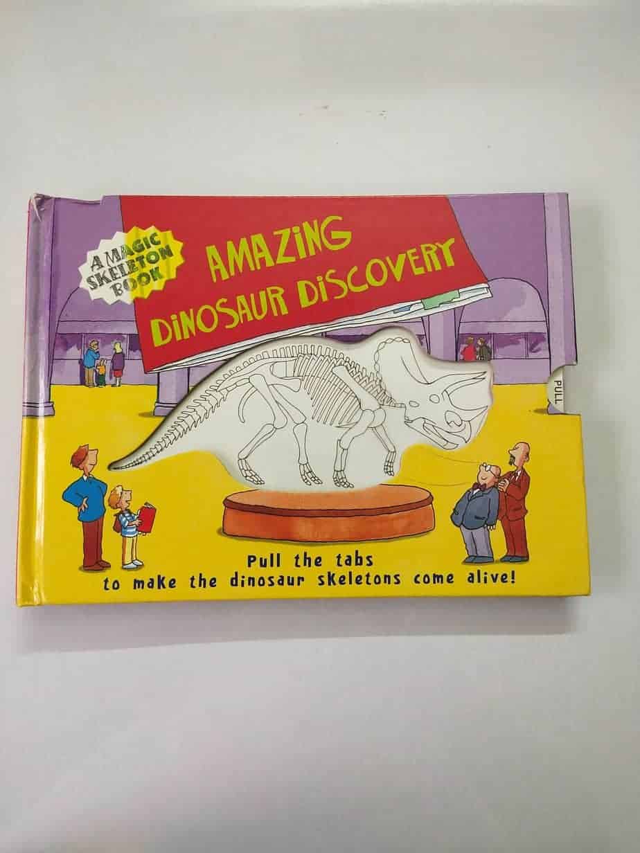 Tom and his dad decided to take a trip to the Dinosaur Museum, and saw skeletons of five different Dinosaurs: A Triceratops, A Stegosaurus, A Corythosaurus, An Apatosaurus, And A big T.Rex! Each page can be pulled out to see the skeleton of each dinosaur.